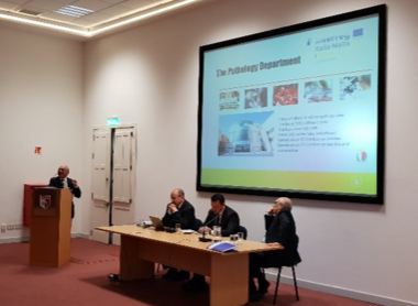 The event continued with presentations from the medical team of the project: Prof Giuseppe Magazzu from University of Messina, Dr Christopher Barbara Clinical Chairman of the Pathology Department at Mater Dei Hospital and Dr Ramon Bondin from the Paediatrics Department at Mater Dei Hospital. Their presentations were more technical explaining the effects of coeliac on the human body and on the quality of life of non-diagnosed patients. They emphasized on the importance of early diagnosis that can save patients serious side effects along the years. Dr Bondin explained to the audience how the schools will be involved in the project and how the testing is planned to be carried out with their support.