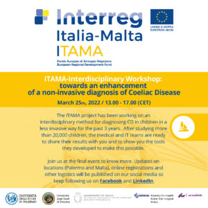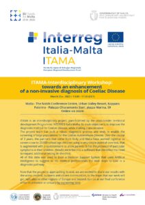 the ITAMA Project’s Interdisciplinary Workshop: Towards a strengthening of a non-invasive diagnosis of Coeliac disease is happening both online via Zoom and in-person in Malta and Sicily.